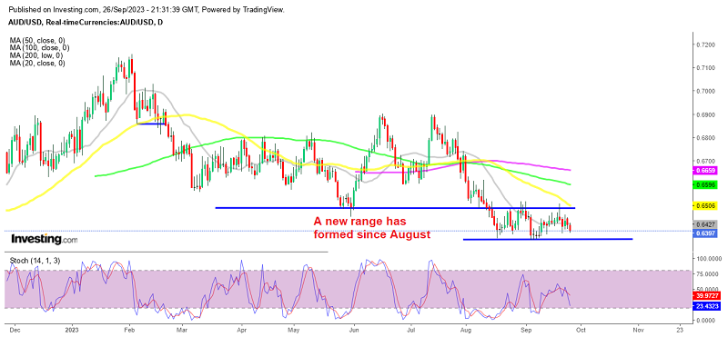 For the third month in a row, the RBA kept the official cash rate at 4.10% in the last meeting which means that they are done with raising rates, while the FED is still leaving the door open for one more hike, which has been keeping the USD bullish. RBA’s Lowe also tried to leave the door open for future rate hikes, indicating that while the RBA had “passed its peak,” it was “still too high and will remain so for some time yet.” So, markets are not expecting any more hikes