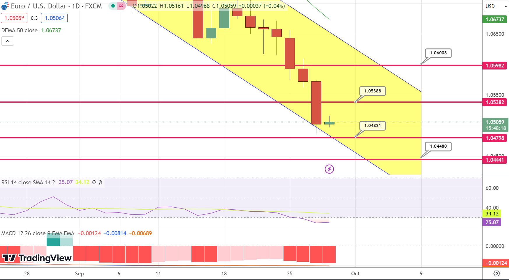 In the early Asian trading hours on Thursday, the EUR/USD pair’s momentum dwindled around the 1.0500 mark. A robust US Dollar (USD), buoyed by positive US economic data and an upsurge in the Treasury yield, reinforces the central pair’s selling pressure. The EUR/USD is trading close to 1.0512, marking a 0.09% gain for the day.