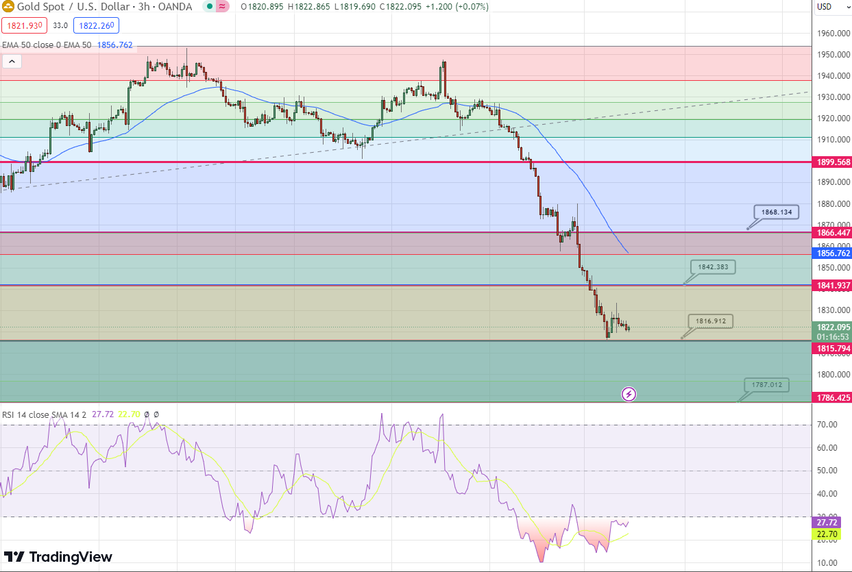 As GOLD inches its way into another declining session since September 25, its trading value hovers close to $1,820 per troy ounce during Wednesday’s initial Asian market hours. A confluence of heightened risk aversion and a robust US Dollar (USD) places the yellow metal under considerable stress.