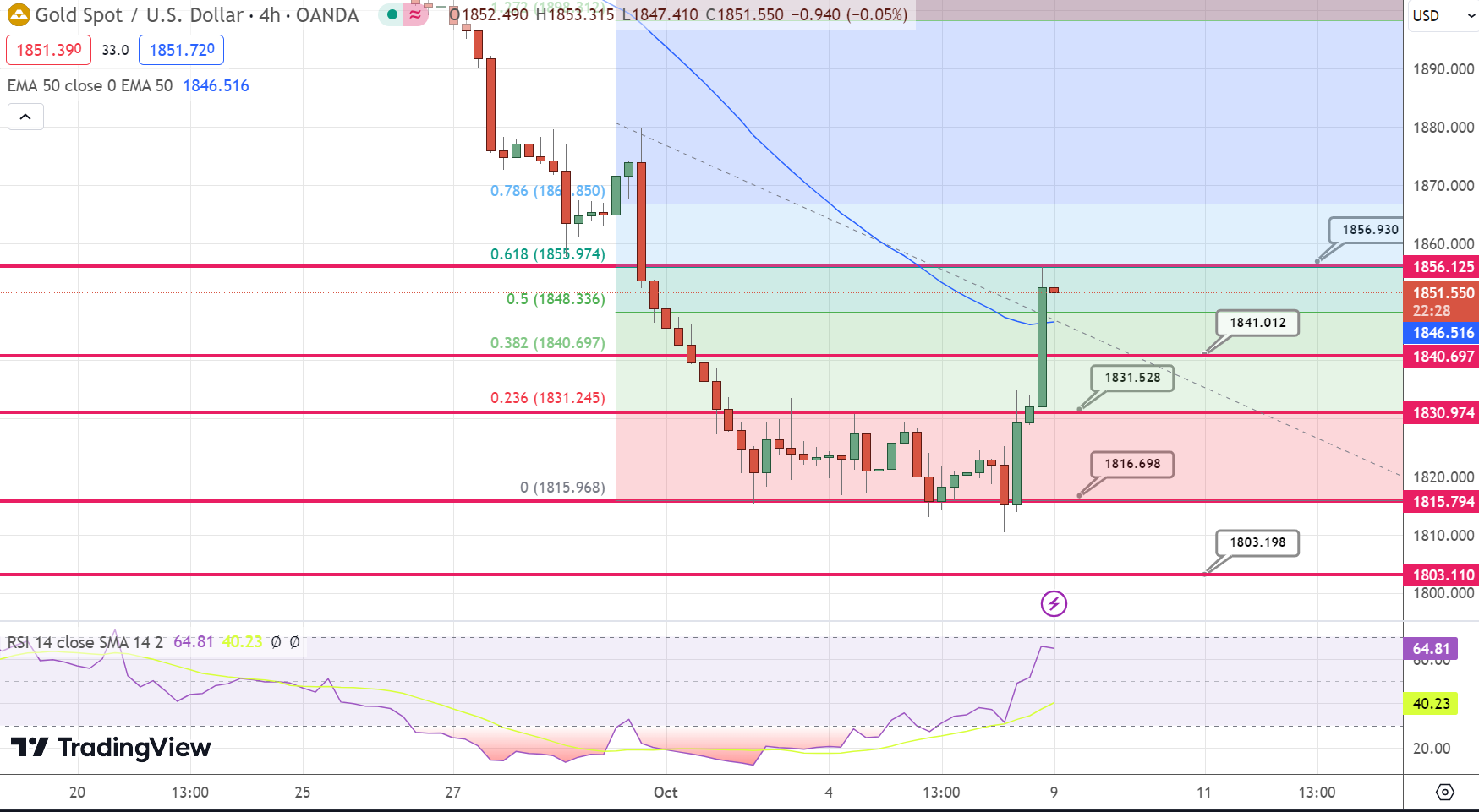 On Friday, the price of GOLD (XAU/USD) experienced a striking intraday reversal, surging over 1.3% from its base around $1,810 — a level not seen since March 8. This rebound followed the release of the U.S. monthly employment data. The subsequent Nonfarm Payrolls (NFP) data intensified the expectations for another interest rate increase by the Federal Reserve in 2023, casting a shadow over the yellow metal.