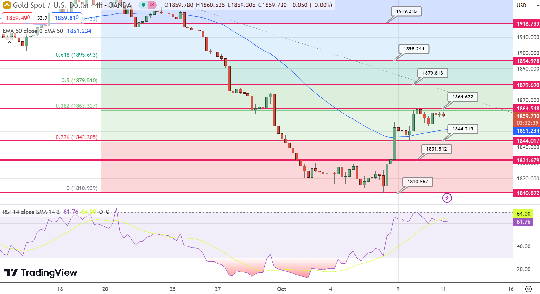 Gold Price Analysis: XAU/USD Hovers Above $1,850 Amid Global Uncertainties and Rate Hike Speculations