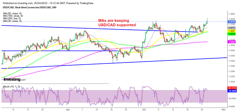 USD/CAD has breached the 1.38 level after Bank of Canada kept rates unchanged at 5.00%, with dovish comments on the economy