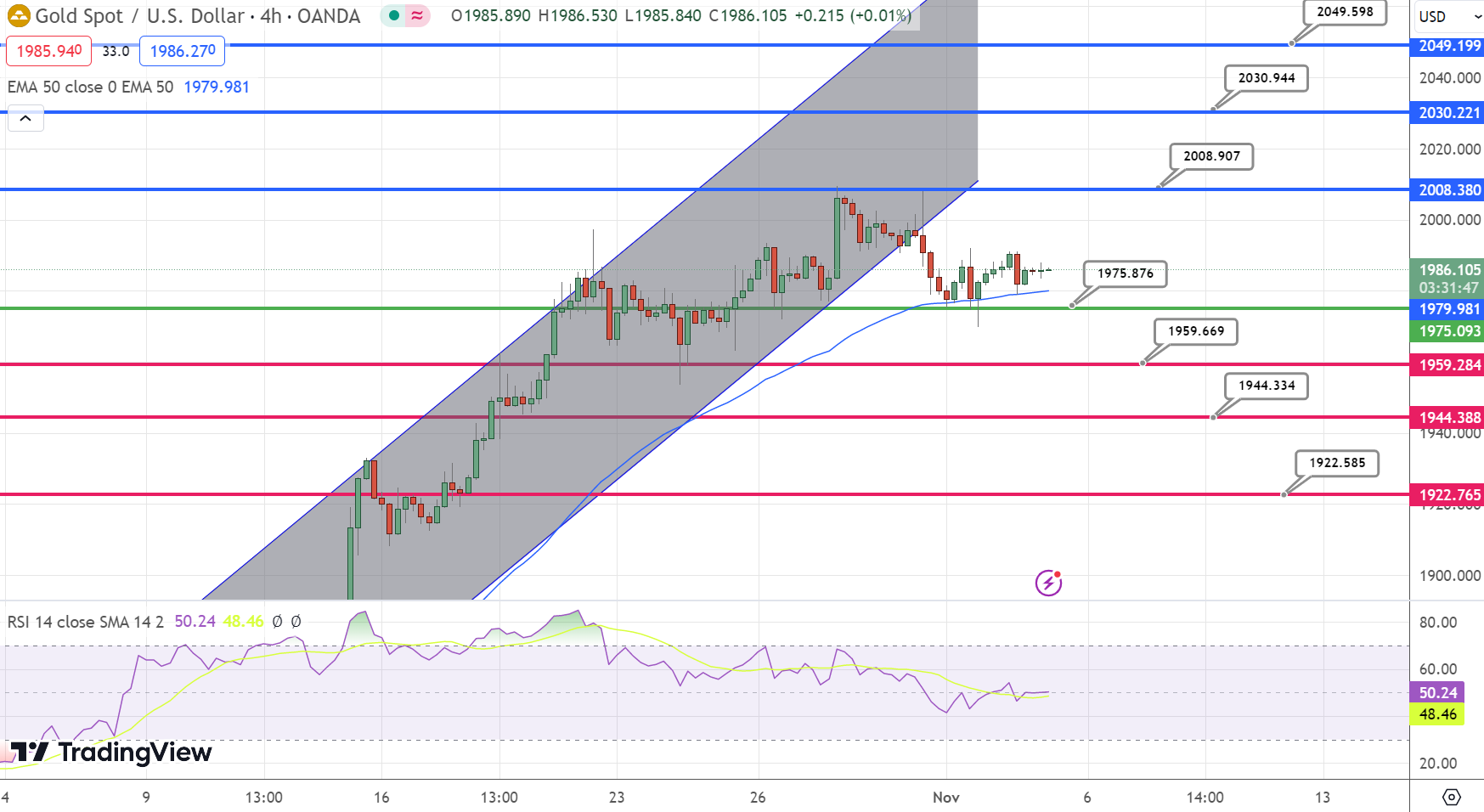 Gold Price Forecast: XAU/USD Hovers Below $2,000 Amid Rate Hike Speculations