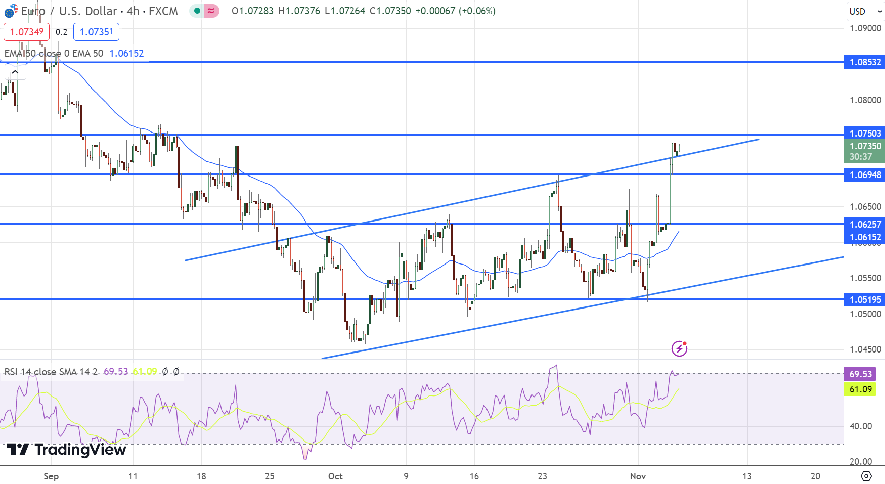 During Monday’s Asian trading session, the EUR/USD pair exhibited restrained fluctuations, stabilizing within a narrow band as it consolidates the substantial gains secured last week, when it reached its highest level since September 14 on Friday. Despite this, spot prices linger beneath the mid-1.0700s, influenced by a slight resurgence of the US Dollar (USD).