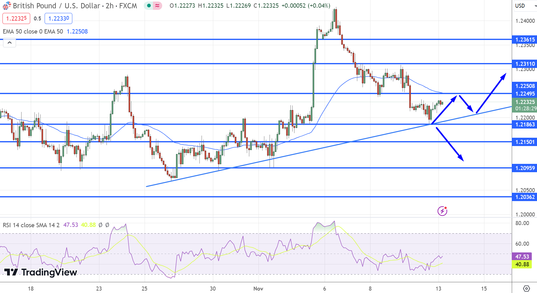 The GBP/USD pair builds on its upward trajectory, currently hovering around 1.2230, as it capitalizes on the UK's positive GDP data and a softening USD.