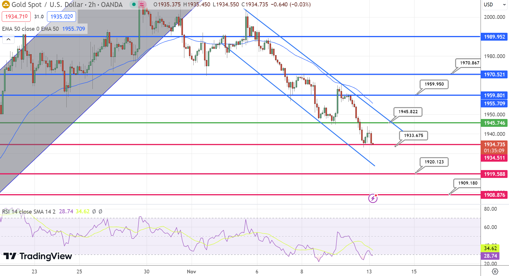 During the early trading hours in Asia, GOLD (XAU/USD) is witnessing a slight uptick, trading near $1,940, a 0.22% increase, as the US Dollar’s stabilization provides a buffer. However, the ascent of US Treasury yields could restrain the metal’s upward potential in the forthcoming session.