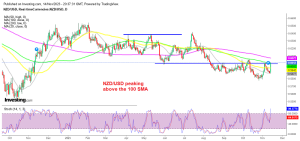 NZD/USD still remains bearish on the daily timeframe though, but the recent attempts to reverse the trend are showing that this pair might have reached a bottom after the two month decline. Although buyers are now facing the 100 daily SMA (green). This moving average has been acting as resistance before, rejecting the price twice in the last two months.