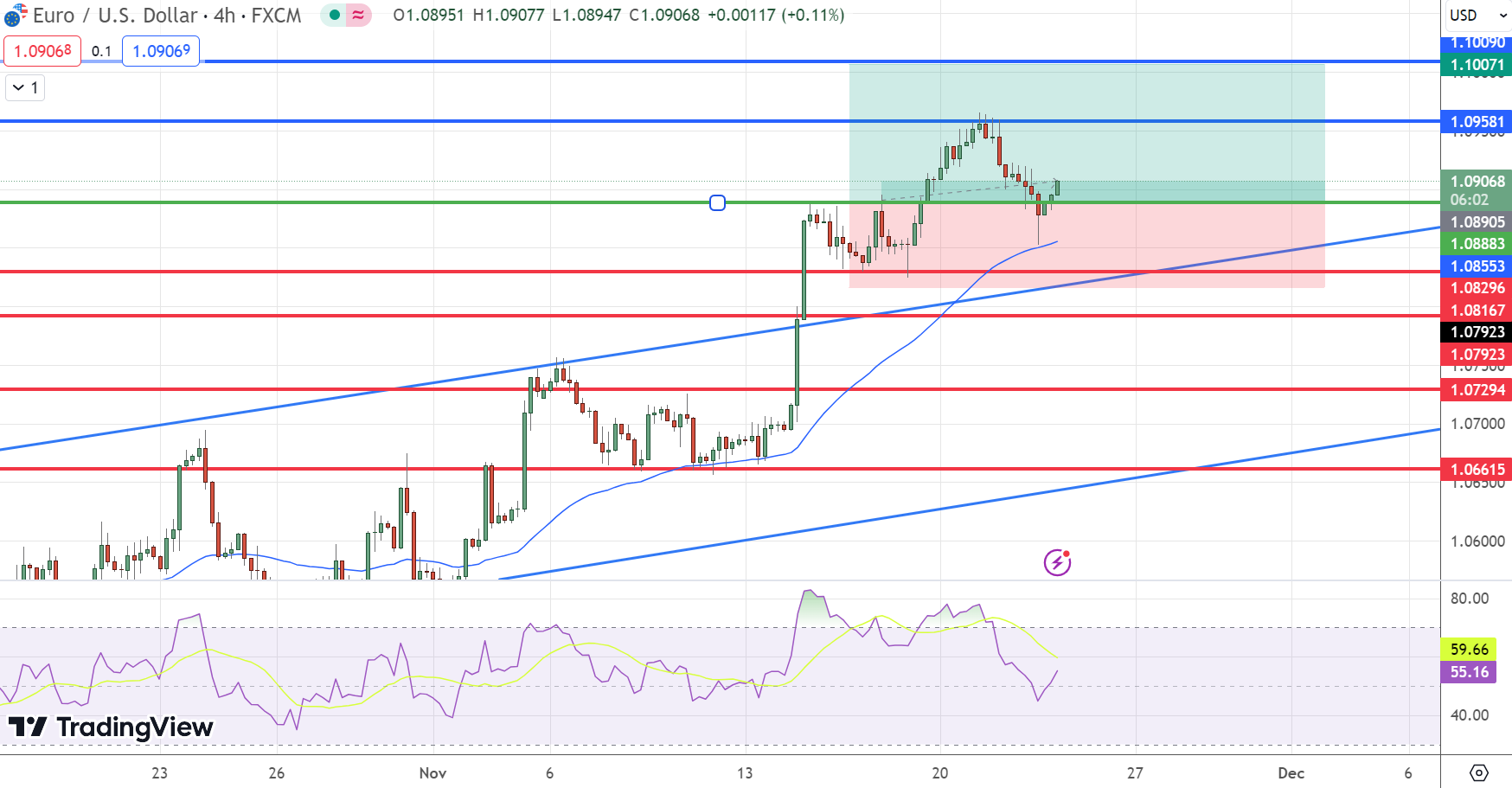 Market participants are now gearing up for the release of the Eurozone preliminary HCOB PMI data for November, scheduled for Thursday, along with the anticipated publication of the minutes from the ECB’s latest meeting. While the US markets will be closed for the Thanksgiving holiday, focus will soon shift to the US S&P Global PMI data due on Friday, which is expected to provide further clarity on the direction of the EUR/USD pair.