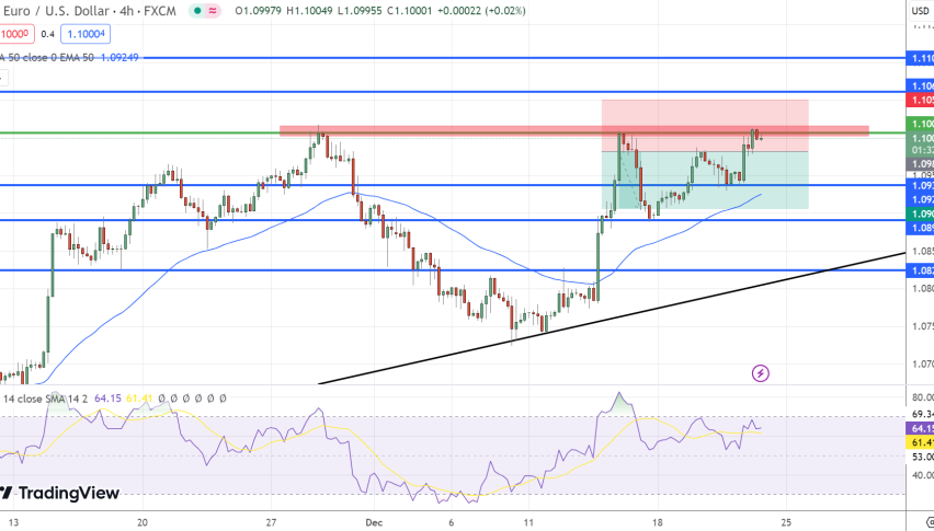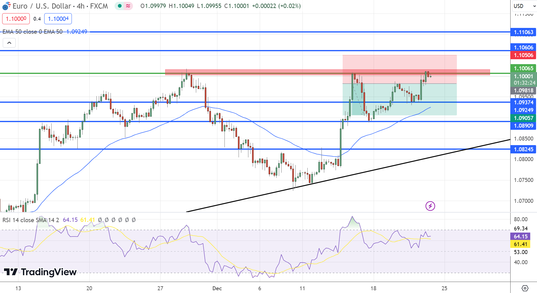 Market attention now turns to the US Core Personal Consumption Expenditure Price Index (Core PCE) for November, expected to show a 0.2% month-on-month and 3.3% year-on-year rise. The pair is currently trading around 1.1008, marking a 0.05% gain for the day.