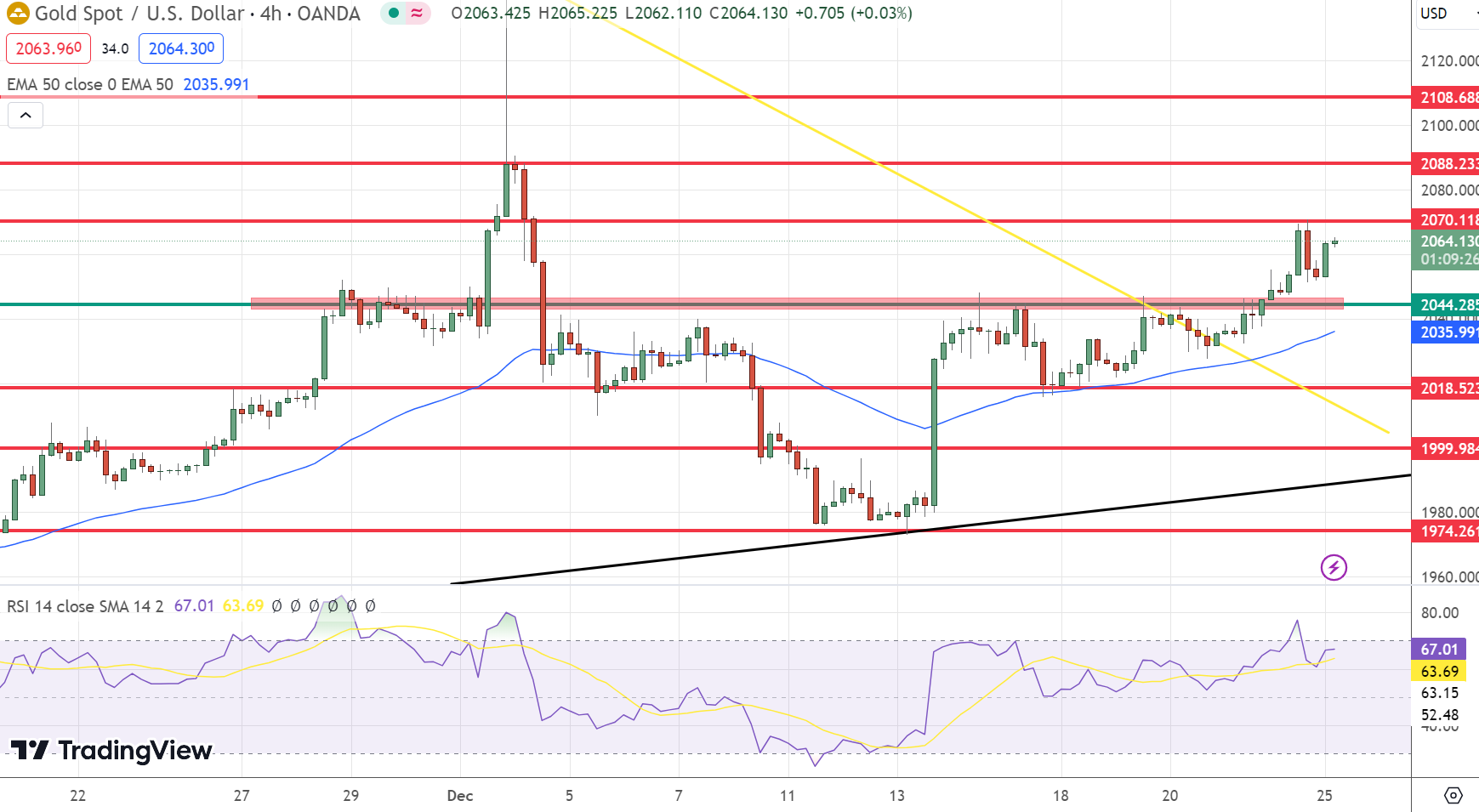This speculation has been especially potent as signs of easing US inflation emerge, propelling XAU/USD to briefly exceed $2,070.