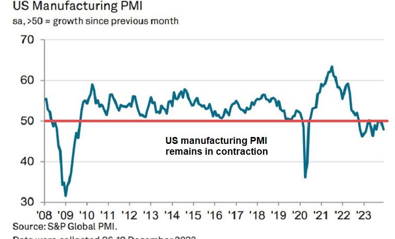 - US Manufacturing Sector Decline: The sector experienced a contraction in December, marked by a decrease in output and a faster downturn in new orders.