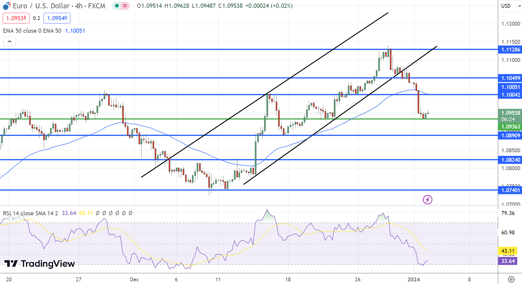 The Federal Reserve’s dovish tone at the end of 2023, with expectations of quarter-point rate cuts starting in March, is a critical factor impacting the currency pair. The market is keenly awaiting US labor data due later this week for further cues on the Fed’s policy direction.