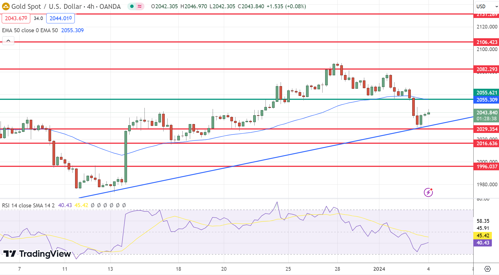 The bearish outlook will persist unless there is a rally breaching 2065.70 and sustaining above it. Today’s expected trading range is between 2020.00 support and 2060.00 resistance, with the trend leaning towards bearish.
