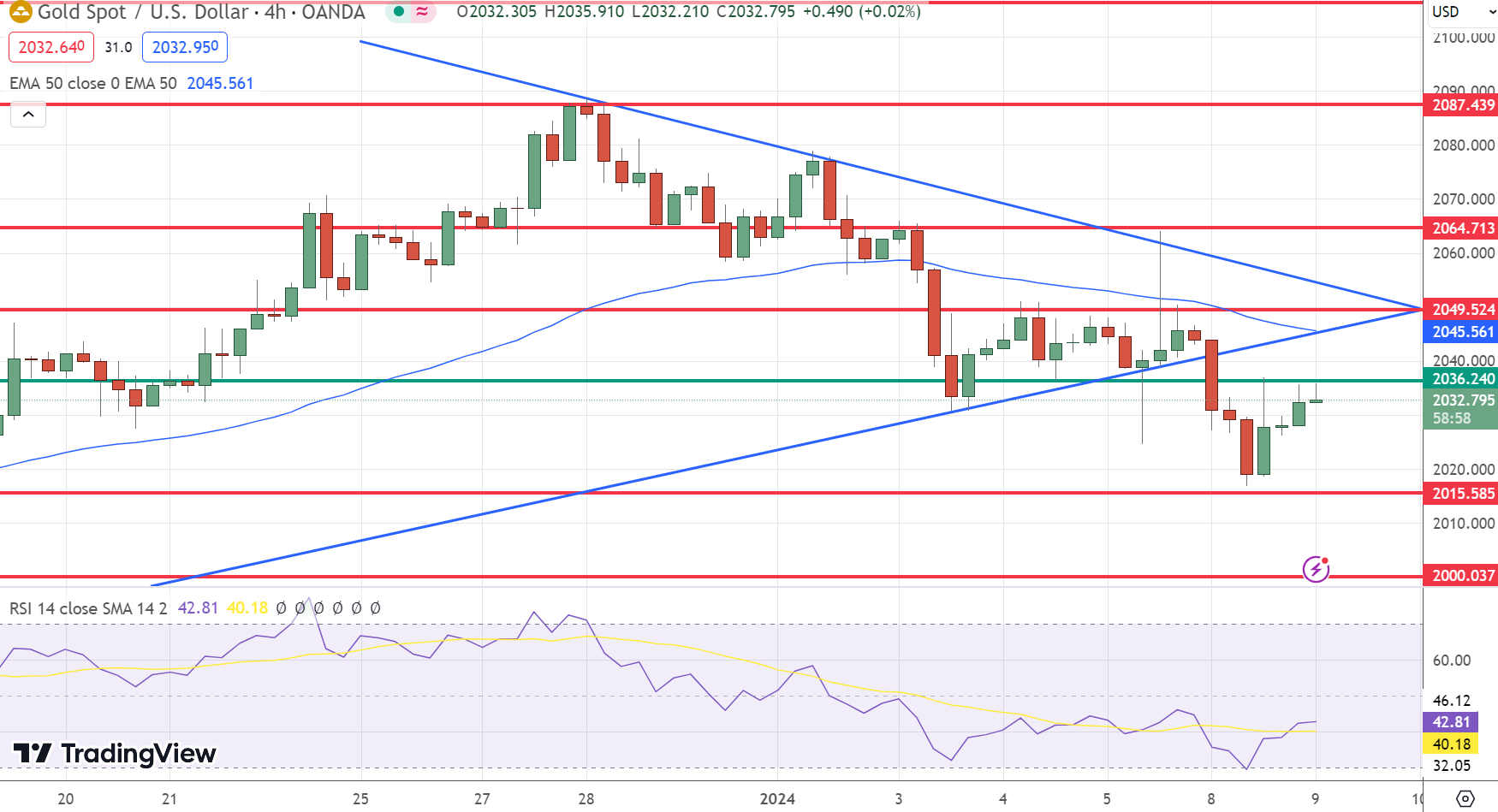 The bearish outlook for GOLD remains valid unless there is a sustained breach above the 2046.60 and 2065.70 levels. The expected trading range for today is between 2015.00 support and 2050.00 resistance, with the overall trend leaning bearish.