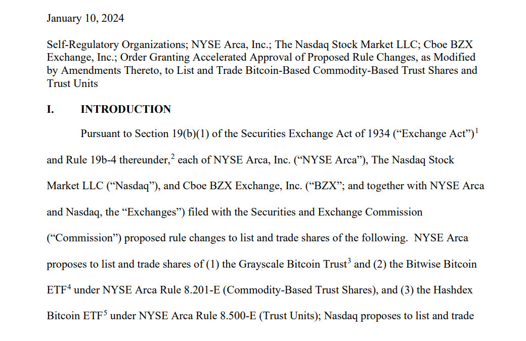 “IT IS THEREFORE ORDERED, pursuant to Section 19(b)(2) of the Exchange Act,87 that the Proposals (SR-NYSEARCA-2021-90; SR-NYSEARCA-2023-44; SR-NYSEARCA2023-58; SR-NASDAQ-2023-016; SR-NASDAQ-2023-019; SR-CboeBZX-2023-028; SRCboeBZX-2023-038; SR-CboeBZX-2023-040; SR-CboeBZX-2023-042; SR-CboeBZX-2023- 044; SR-CboeBZX-2023-072) be, and hereby are, approved on an accelerated basis”