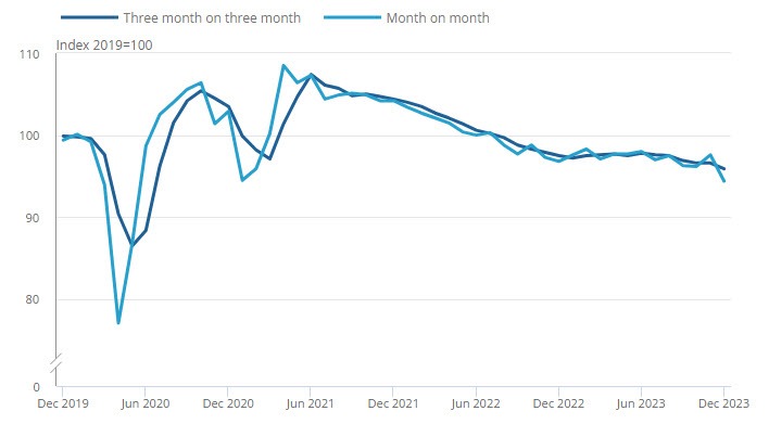 - December retail sales year-over-year (YoY) decreased by -2.4%, contrasting with the expected growth of +1.1%.
