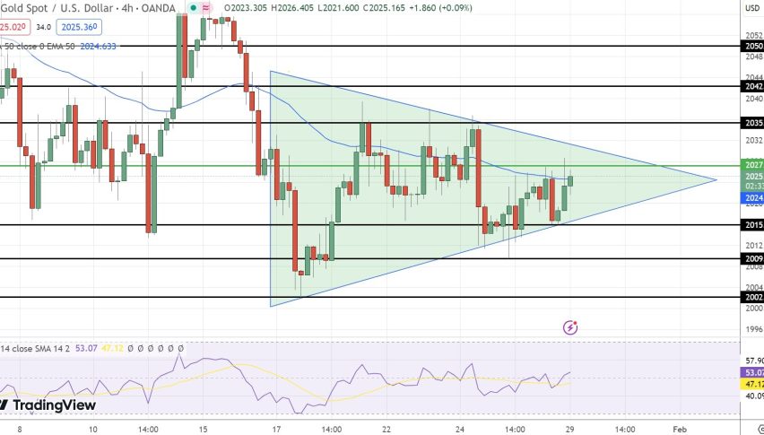 The precious metal faces a trio of resistance levels at $2044, $2050, and $2052, any of which could act as a ceiling, halting bullish momentum.