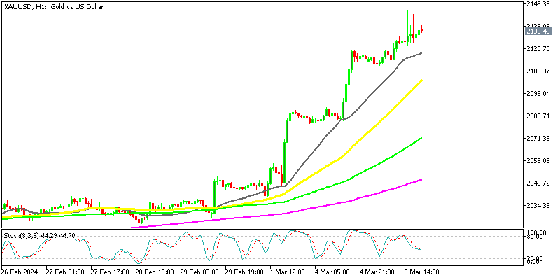 Gold buyers have been pressing hard in the last several days, as uncertainty regarding central banks is keeping the demand for XAU high. The Gold price has surged more than $100, pushing above $2,100 yesterday, while today buyers have broken the all-time high, which stood around $2,134 before, now it comes at $2,141.80.