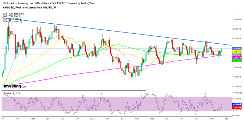 Gold and the Silver price have been surging in the last several trading days, as markets expect the start of rate cuts, which is driving cash from bonds to commodities like XAU and XAG. Gold pushed above $2,100 again yesterday while the price of Silver was heading for $24.