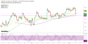 The central bank is closely monitoring the broader spectrum of inflation indicators and is awaiting further evidence of sustained downward pressure in underlying inflation before making decisions. These comments sent USD/CAD diving lower, however the decline stopped right at the 100 SMA (green) on the H4 chart.