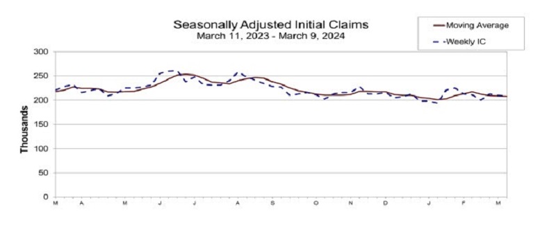 - The largest increases in initial claims for the week ending March 2 were in New York (+14,176), California (+5,549), Texas (+2,102), Michigan (+979), and Florida (+783),