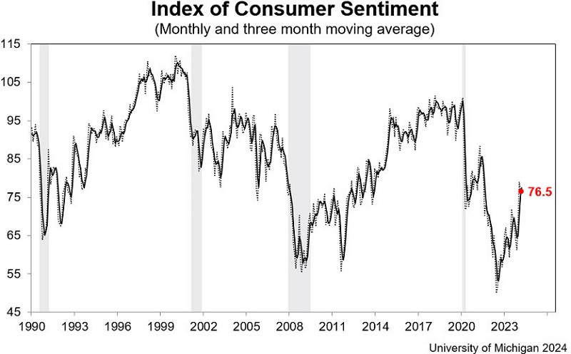 March 2024 US Consumer Sentiment from the University of Michigan