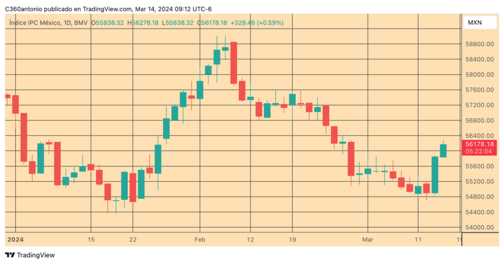 The S&P/BMV IPC index, from the Mexican Stock Exchange (BMV), which comprises the 35 most traded local stocks, is down 0.80% at 55,779.97 points. The FTSE BIVA index, from the Institutional Stock Exchange (Biva), is losing 0.81% to a level of 1,148.38 points.
