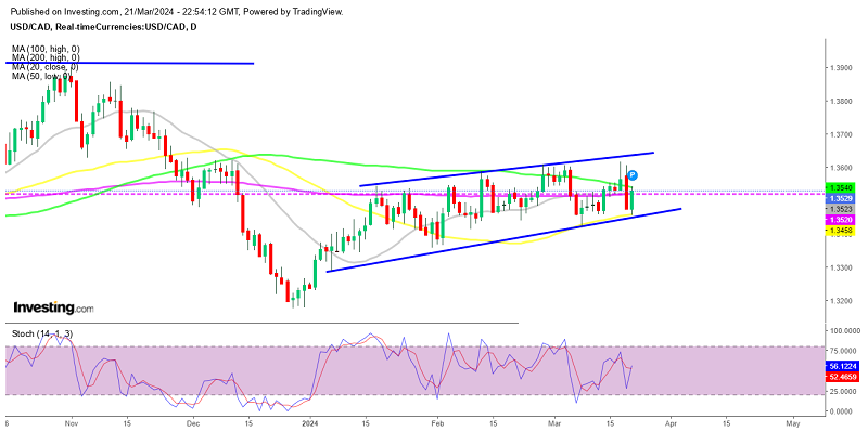 USD/CAD has been trading within a fluctuating range for several weeks, moving between higher and lower prices. The market action is confined within a channel that is slightly tilted to the upside. However, due to the significant volatility with frequent ups and downs, neither buyers nor sellers are able to establish a prolonged dominance in the market.