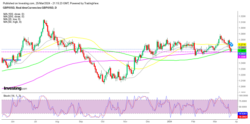The GBP to USD rate has been trading in a range between 1.25 and 1.28 since December, but we might see a bearish break for GBP/USD