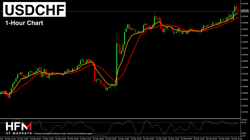 Meanwhile, the US Dollar Index, though initially trading lower than the day’s opening price, has been gaining bullish momentum over the past three hours. Positive Durable Goods Orders data supports the US Dollar, but other indicators, like the CB Consumer Confidence, fell below expectations. Technical analysis, utilizing the 75-Bar EMA and the RSI on a 15-Bar Period, suggests upward price movement for the USDCHF pair since early March 21st.