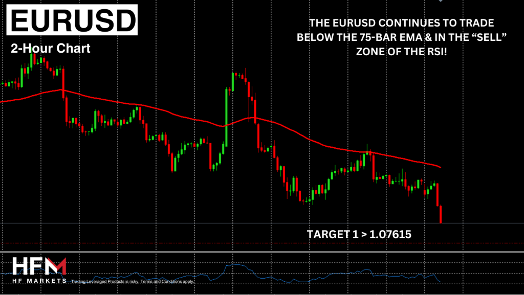Technical analysis currently points towards a continued downward trend. The price is trading below the neutral on the RSI and below the 75-Bar EMA. However, investors should note this will also be dependent on upcoming US data.