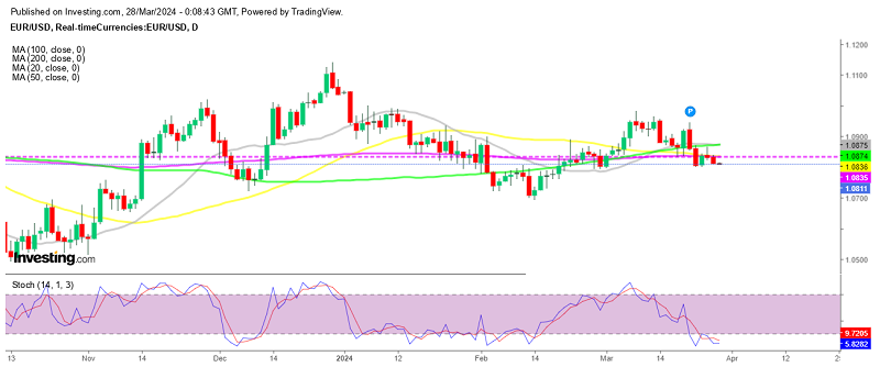 EUR/USD has turned bearish since Thursday, as the FED is looking less dovish than the ECB now and the EU economy will keep dragging the Euro
