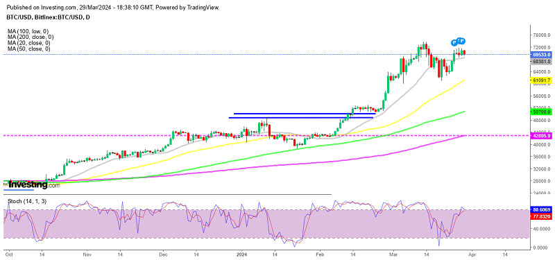 The Bitcoin price continues to hover around $70,000, while Ethereum is hovering around $3,500, as the price moves above and below these major levels. After the second attempt at the upside during the weekend which failed to push BTC and ETH to new record highs, we have been seeing some consolidation for several days, which is not a bad thing as as they’re consolidating gains.