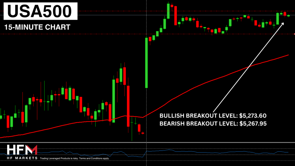 The USA500 starts the day with a moderate bullish impulse wave but loses momentum and trades sideways thereafter. The index is currently trading 0.41% higher than the most recent close. The price of the index is now trading at an all-time high and has risen more than 10.50% in 2024. The SNP500 has also been the best performing index in 2024 and has outperformed both the NASDAQ and Dow Jones. However, the index does offer a lower annual dividend yield.