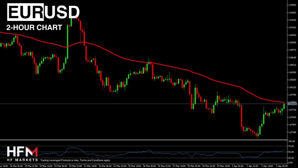 Examining longer-term timeframes, such as the popular 2-hour chart, the EURUSD price trajectory continues to suggest a downward trend. Trading below the 75-bar EMA, price action consistently aligns with a bearish pattern. A breach below 1.07682 could trigger sell signals, signalling a looming downturn.