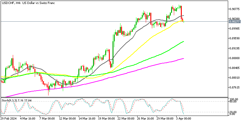 However, the mid-term bullish outlook for the pair is based on the Swiss National Bank starting to reduce rates already and the possibility of the Fed waiting longer to lower interest rates, possibly in late summer as the odds for a cut in the June meeting keep falling. So, the fundamental bias has shifted in favor of the US dollar over the Swiss franc (CHF) since the Swiss National Bank’s rate cut on March 21.