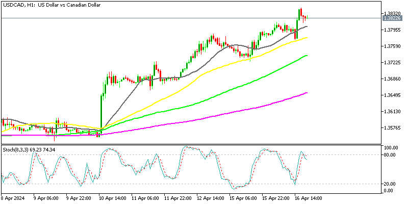 The rate of USD to CAD continues to surge higher after breaking above the channel and today it climbed further to 1.2847 after the inflation