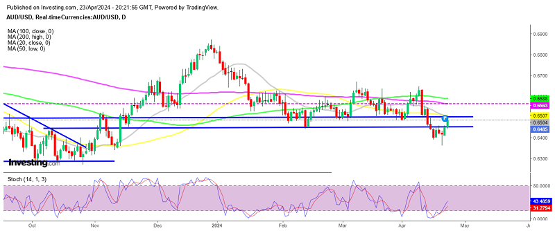 The AUD/USD exchange rate experienced a reversal this week after declining by three cents over the previous two weeks. The increase in the exchange rate was supported by promising Australian manufacturing PMI data and weakness in the USD. As a result, the pair managed to break above the first resistance level at 0.6450 yesterday and continued to rise towards the second resistance level at 0.65. This upward movement indicates a shift in momentum favoring the Australian dollar against the US dollar, but further price action will determine whether the bullish trend persists.