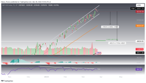 Should it overcome this barrier, the index could ascend to the Golden Ratio at 39,926. A bullish breakthrough at this level would invalidate the correction phase, reaffirming US30’s uptrend. The daily chart indicators are predominantly bullish, with a golden crossover in the EMAs and the MACD lines on the verge of a bullish crossover, complemented by a rising MACD histogram. The RSI, however, continues to oscillate within neutral territory.