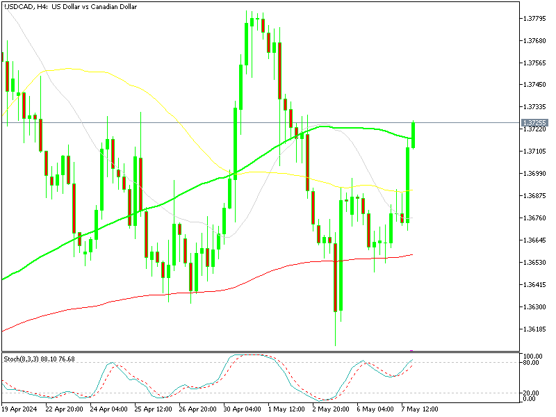 The USD to CAD rate surged by 70 pips today, breaching the 1.37 mark and continuing its upward trend after reversing last week's decline.