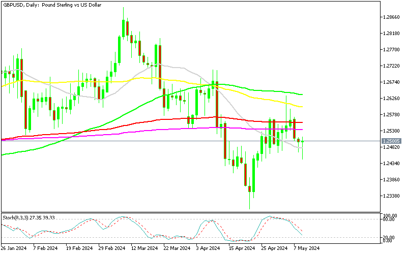 GBP/USD experienced significant selling pressure throughout March and most of April, resulting in the price falling to a low of $1.23. This downward trend was largely fueled by increased expectations that the Bank of England (BoE) would implement more aggressive monetary easing measures.