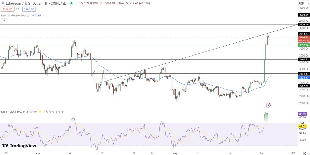 From a technical perspective, Ethereum was trading around $3,566 on Monday, up more than 16% on the day. As the SEC’s decision on VanEck’s application approaches, investors should brace for significant market fluctuations. Ethereum could test critical support levels if the ETF applications are denied.
