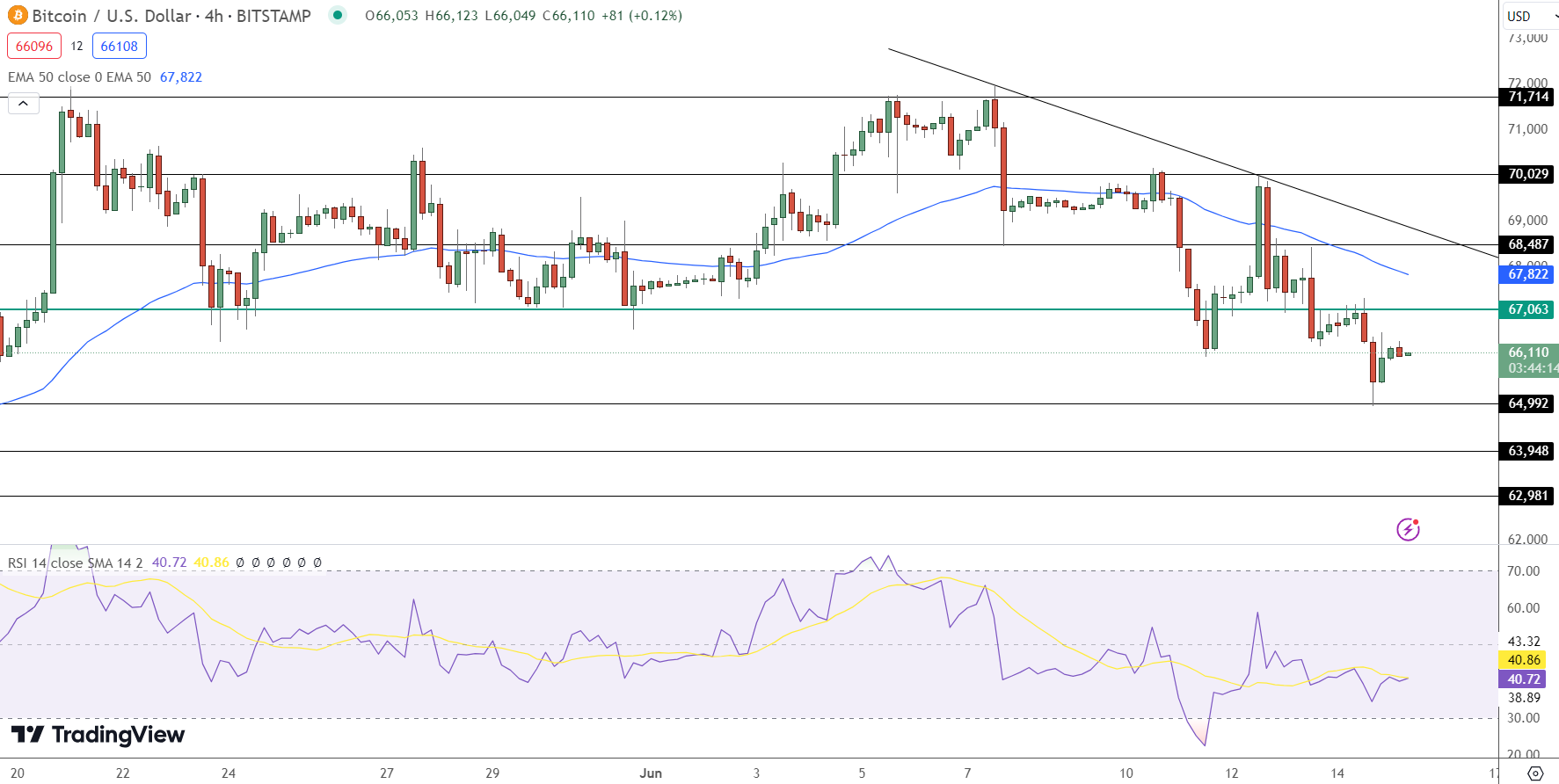 While the Fed is widely expected to maintain the current interest rate, a Reuters poll suggests a possibility of two rate cuts later this year. This potential policy shift could significantly impact Bitcoin’s price, which has already dipped to $67,500 from last week’s peak of nearly $72,000.