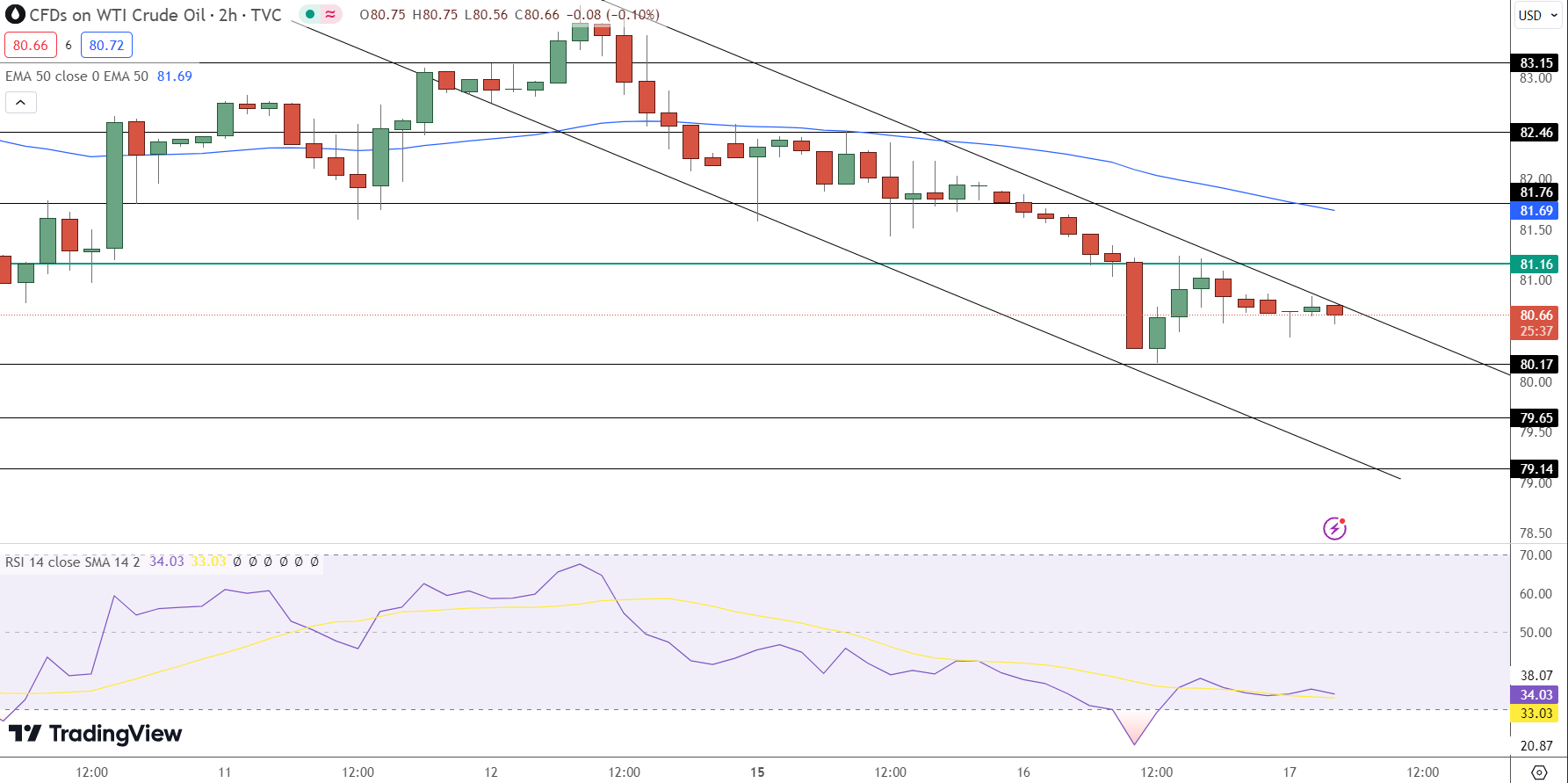 Wednesday saw oil prices holding steady, with Brent crude barely moving from a one-month low of $83.30 reached on Tuesday—the lowest since June 17. Whereas, the USOIL holds near $80.50.