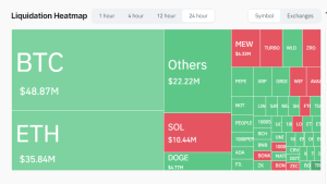 According to CoinGlass data, most of those liquidations were long positions, totaling $110 million, most of which occurred during the significant market decline following Biden’s remark. At $49 million throughout that time, Bitcoin has been the most liquidated, followed by Ethereum at $31 million.