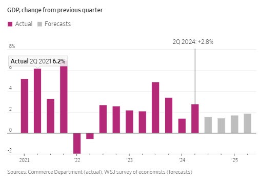 - GDP Growth: Q2 GDP grew by 2.8%, surpassing the estimated 2.0%. This follows a 1.4% growth in Q1 and a 3.4% rise in Q4 2023.