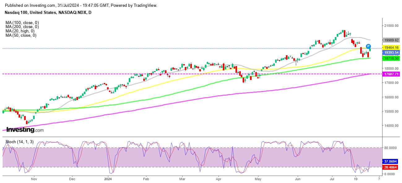 We have seen a sizeable retreat in stock markets in recent weeks, but they surged higher today, with Nasdaq leading the way. Before the FOMC rate announcement scheduled for 6 PM GMT, major US market indices opened higher, signaling strong investor sentiment. Federal Reserve Chair Jerome Powell downplayed the APD employment and employment cost figures, which slightly missed estimates at 0.9% versus the expected 1.0%. This pointed to a softening in the US labor market.