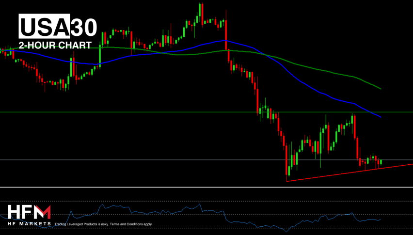 Technically, the Dow Jones continues to find support at the $38,577.09 level, though it’s testing this level for the fourth time this week. The index is currently trading below the 75-Period EMA, 100-Period SMA, and below the 50.00 level on the RSI. On a positive note, the VIX index and bond yields are trading lower.
