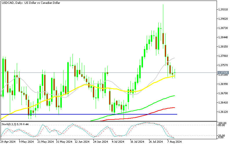The global stock market meltdown last Monday pushed USD/CAD above the 1.3850 resistance level, reaching a peak just above it on the daily chart. However, as market sentiment stabilized, those gains were quickly given up. Sellers took advantage of each dip below, driving the price down to 1.3717, where it found support at the daily chart’s 50 SMA (yellow). Over the past two days, attempts by traders to break below this moving average have been unsuccessful, which is a positive sign for USD/CAD buyers. However, they will be looking for a swift price rebound off the 50 SMA. Today, Canada’s building permits data showed a significant decline, despite the country’s rapidly growing population due to immigration.