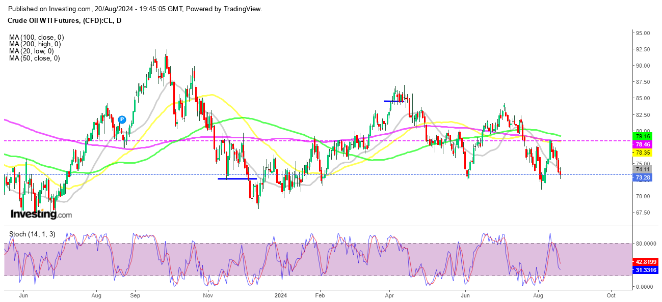 Downtrend Unfolds in Oil As WTI Returns Below $73 Again